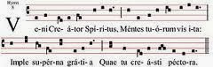 | Veni, creátor Spíritus, mentes tuórum vísita, imple supérna grátia, quæ tu creásti péctora. Qui díceris Paráclitus, altíssimi donum Dei, fons vivus, ignis, cáritas, et spiritális únctio. Tu septifórmis múnere, dígitus patérnæ déxteræ, tu rite promíssum Patris, sermóne ditans gúttura. Accénde lumen sensibus, infúnde amórem córdibus, infírma nostri córporis virtúte firmans pérpeti. Hostem repéllas lóngius pacémque dones prótinus; ductóre sic te prǽvio vitémus omne nóxium. Per Te sciámus da Patrem noscámus atque Fílium, teque utriúsque Spíritum credámus omni témpore. Deo Patri sit glória, et Fílio, qui a mórtuis surréxit, ac Paráclito, in sæculórum sǽcula. Amen. |